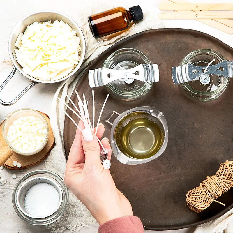 Fitilul din bumbac cerat cu capsa este un material esențial pentru producția de lumanari decorative, pahare sau pastile. Aceste fitiluri sunt fabricate din bumbac de cea mai înaltă calitate și au fost cerate pentru a asigura o ardere mai uniformă și mai eficientă. Fiecare fitil are o capsa care poate fi folosită pentru a fixa fitilul în baza lumanarii înainte de turnare, astfel încât să nu se miște.