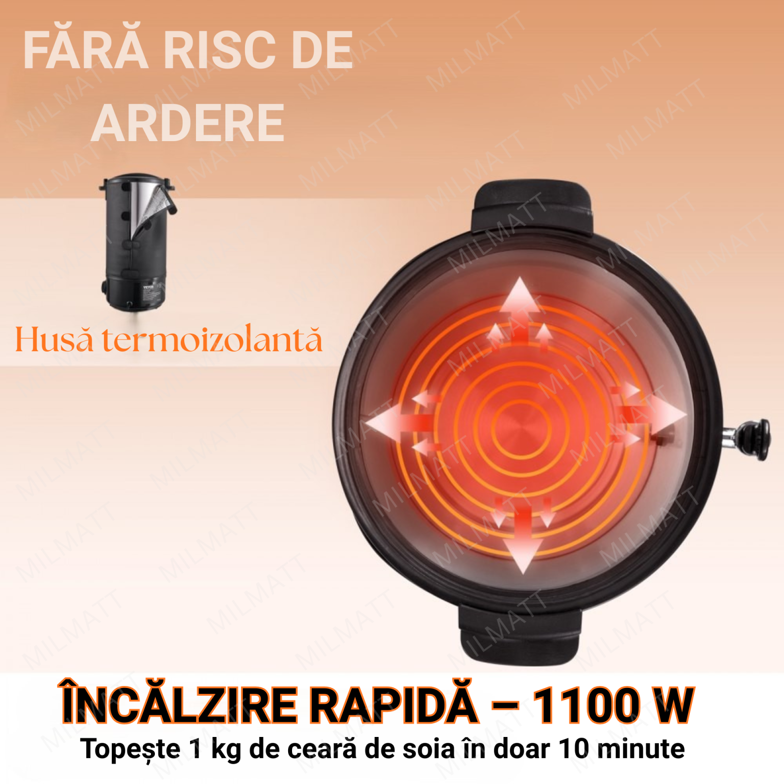 Capacitate comercială mare: Cu o capacitate de 10 litri, acest topitor de ceară poate topi 7 kg de ceară de lumânări simultan, fiind ideal pentru magazine mici, pasionați de bricolaj și profesioniști cu cerințe de producție ridicate. Pe lângă fabricarea lumânărilor, poate fi folosit și pentru săpun, produse de îngrijire a părului, cremă de față, cosmetice, balsam de buze și alte produse, economisind timp și îmbunătățind eficiența.